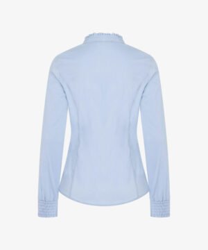 Features: crew neckline, button-back detail, short sleeves with rolled-up cuffs, straight hemline, side slits. Fit: semi-fitted; follows the lines of the body with added wearing ease. Length: missy length 25-1/4″ to 27-5/8″.